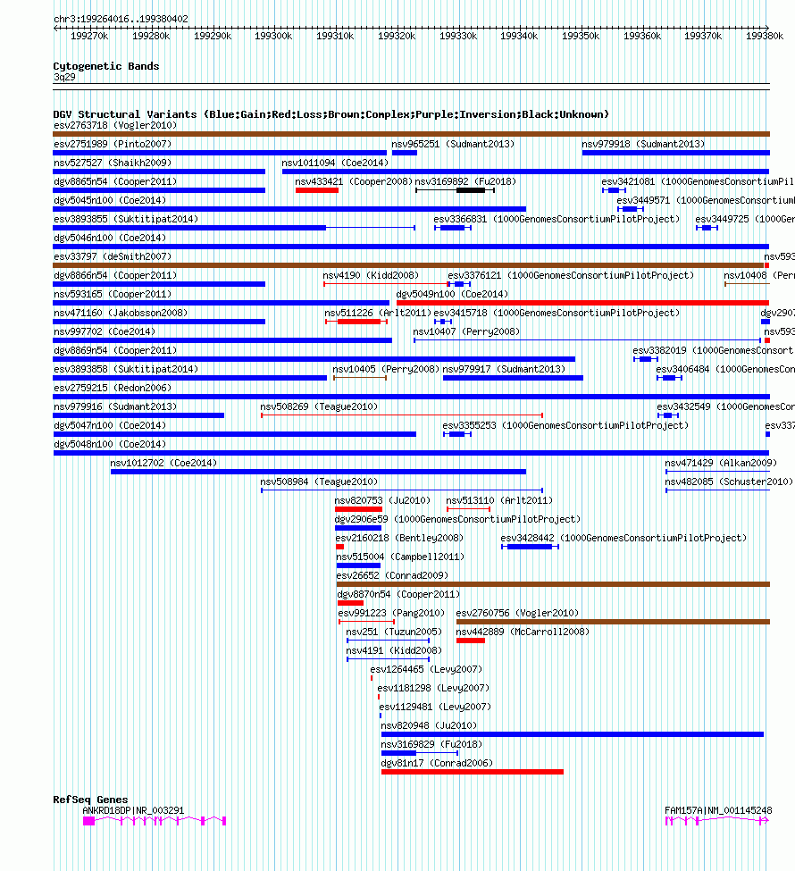 Variant DetailsVariant: dgv5048n100| Internal ID | 22791135 | | Landmark | | | Location Information | | | Cytoband | 3q29 | | Allele length | | Assembly | Allele length | | hg38 | 116387 | | hg19 | 116387 | | hg18 | 116387 |