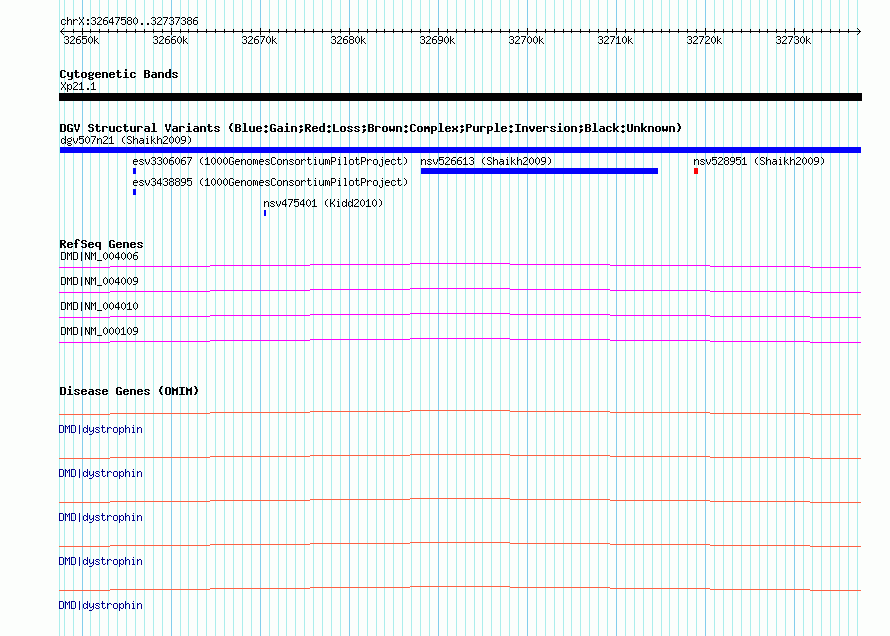 Variant DetailsVariant: dgv507n21| Internal ID | 22766699 | | Landmark | | | Location Information | | | Cytoband | Xp21.1 | | Allele length | | Assembly | Allele length | | hg38 | 89807 | | hg19 | 89807 | | hg18 | 89807 | | hg17 | 89807 |