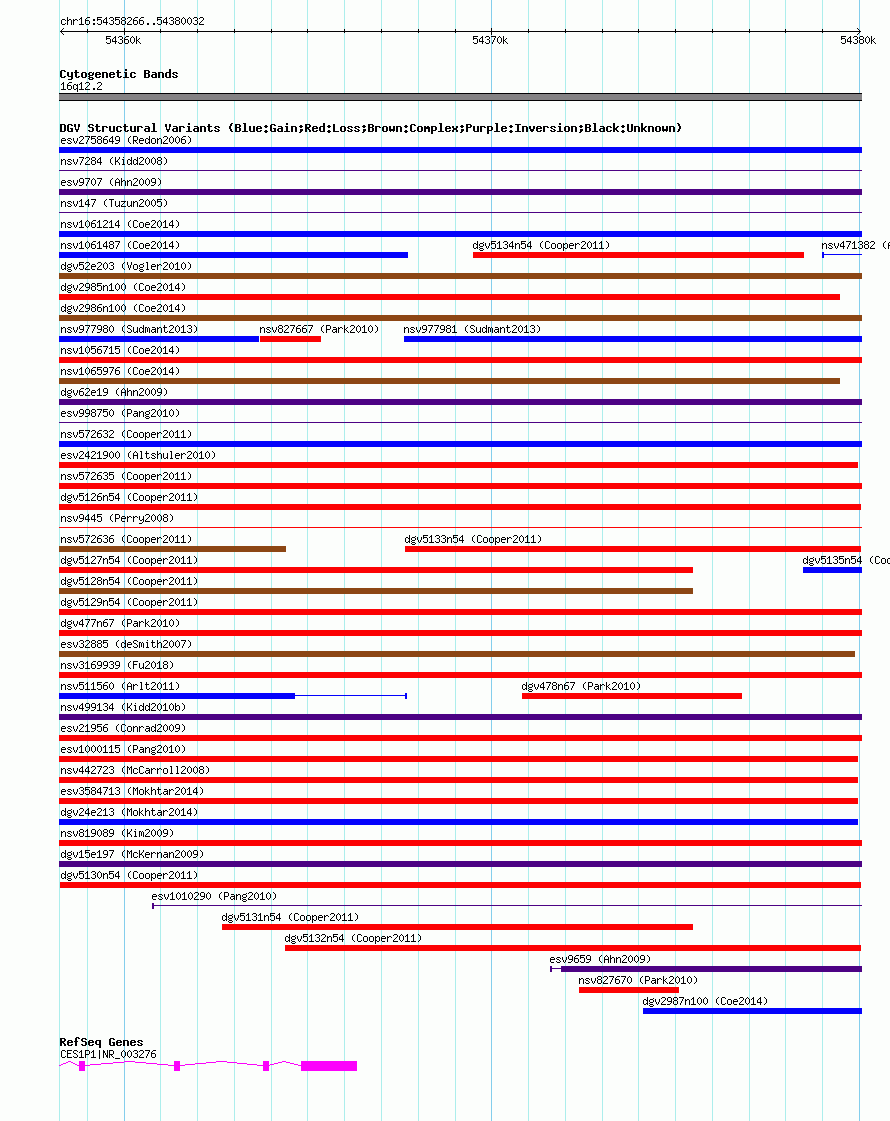 Variant DetailsVariant: dgv5130n54| Internal ID | 22773025 | | Landmark | | | Location Information | | | Cytoband | 16q12.2 | | Allele length | | Assembly | Allele length | | hg38 | 21767 | | hg19 | 21767 | | hg18 | 21767 |