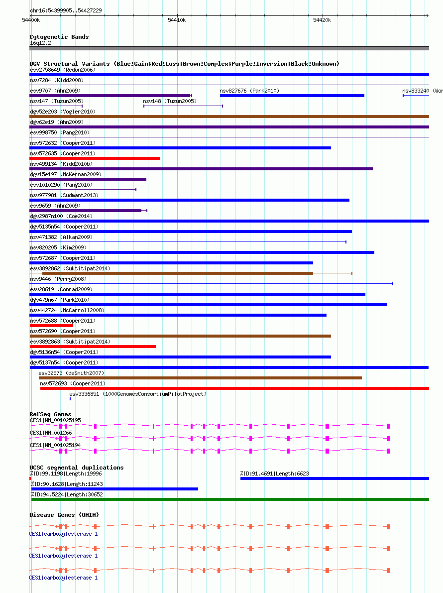 | | Variant Type | CNV gain | | Copy Number | | | Allele State | | | Allele Origin | | | Probe Count | | | Validation Flag | | | Merged Status | M | | Merged Variants | | | Supporting Variants | nsv572691, nsv572692 | | Samples | | | Known Genes | CES1 | | Method | SNP array | | Analysis | Illumina SNP array copy number analysis | | Platform | Not reported | | Comments | | | Reference | Cooper_et_al_2011 | | Pubmed ID | 21841781 | | Accession Number(s) | dgv5137n54