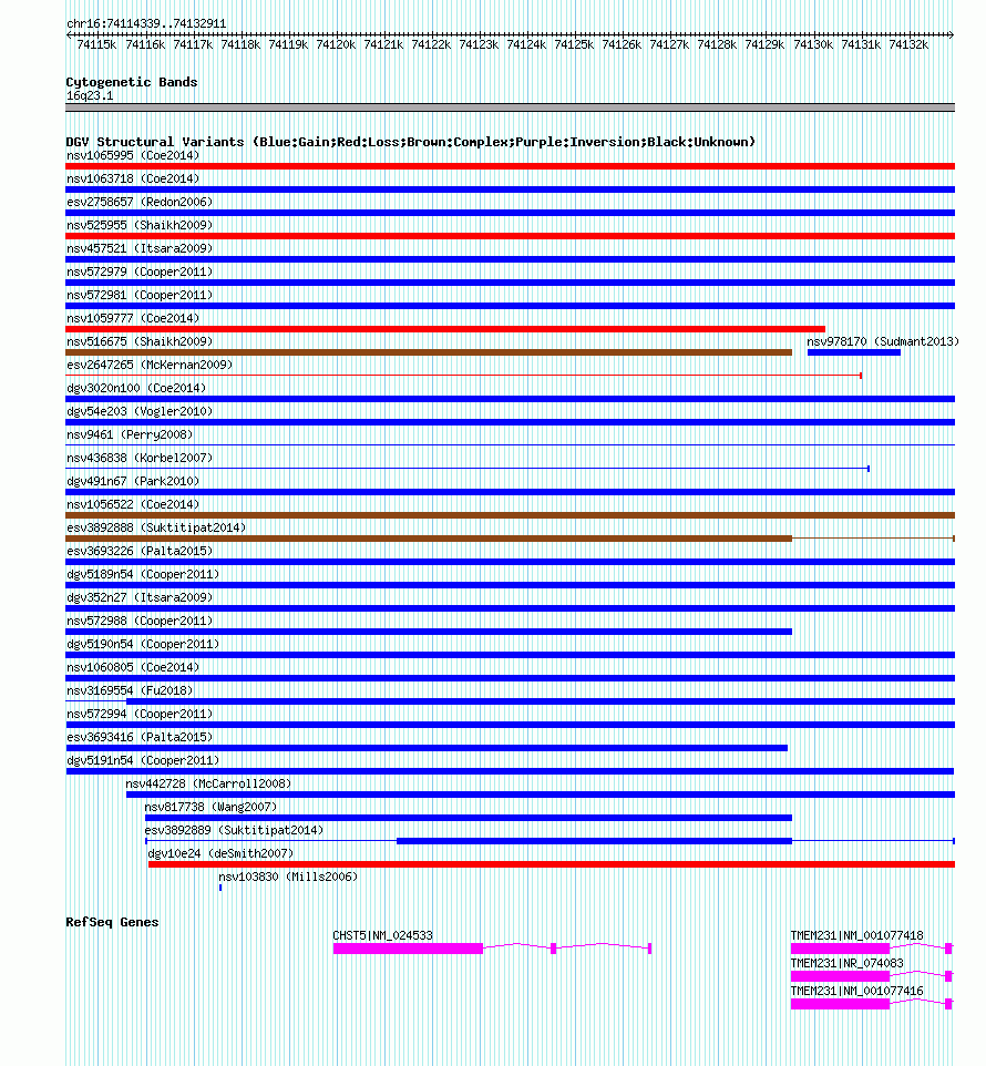 Variant DetailsVariant: dgv5191n54| Internal ID | 22773086 | | Landmark | | | Location Information | | | Cytoband | 16q23.1 | | Allele length | | Assembly | Allele length | | hg38 | 18573 | | hg19 | 18573 | | hg18 | 18573 |