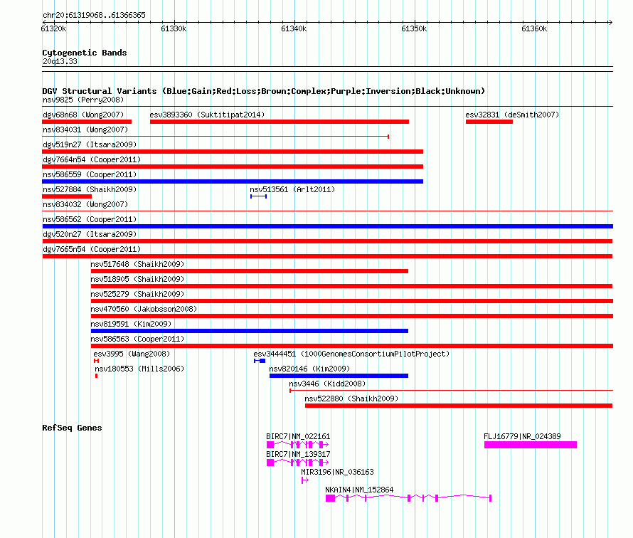 Variant DetailsVariant: dgv520n27| Internal ID | 22767249 | | Landmark | | | Location Information | | | Cytoband | 20q13.33 | | Allele length | | Assembly | Allele length | | hg38 | 47298 | | hg19 | 47298 | | hg18 | 47298 | | hg17 | 47298 |