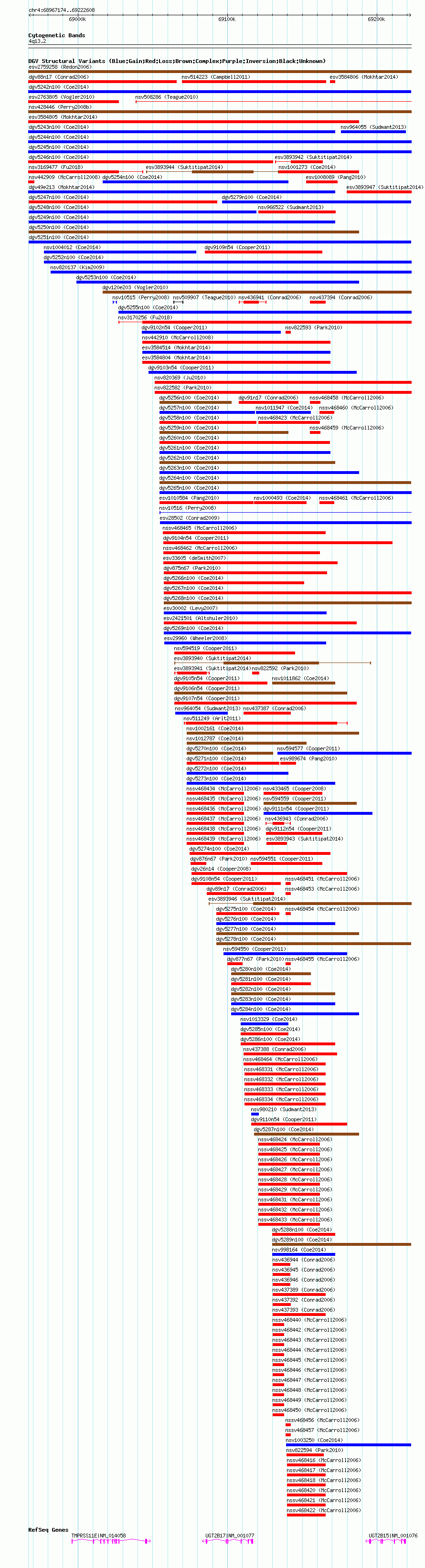 Variant DetailsVariant: dgv5251n100| Internal ID | 22791338 | | Landmark | | | Location Information | | | Cytoband | 4q13.2 | | Allele length | | Assembly | Allele length | | hg38 | 255435 | | hg19 | 255435 | | hg18 | 255435 |