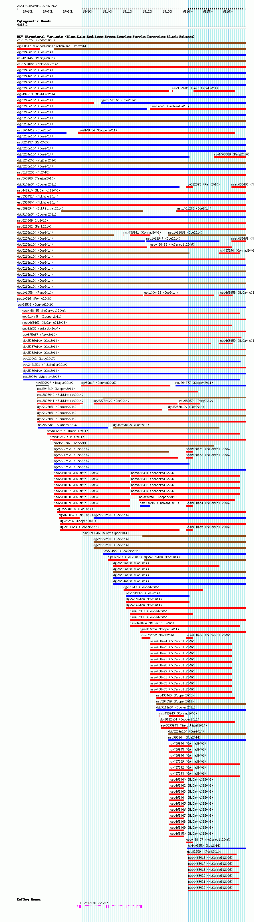 Variant DetailsVariant: dgv5261n100| Internal ID | 22791348 | | Landmark | | | Location Information | | | Cytoband | 4q13.2 | | Allele length | | Assembly | Allele length | | hg38 | 113977 | | hg19 | 113977 | | hg18 | 113977 |