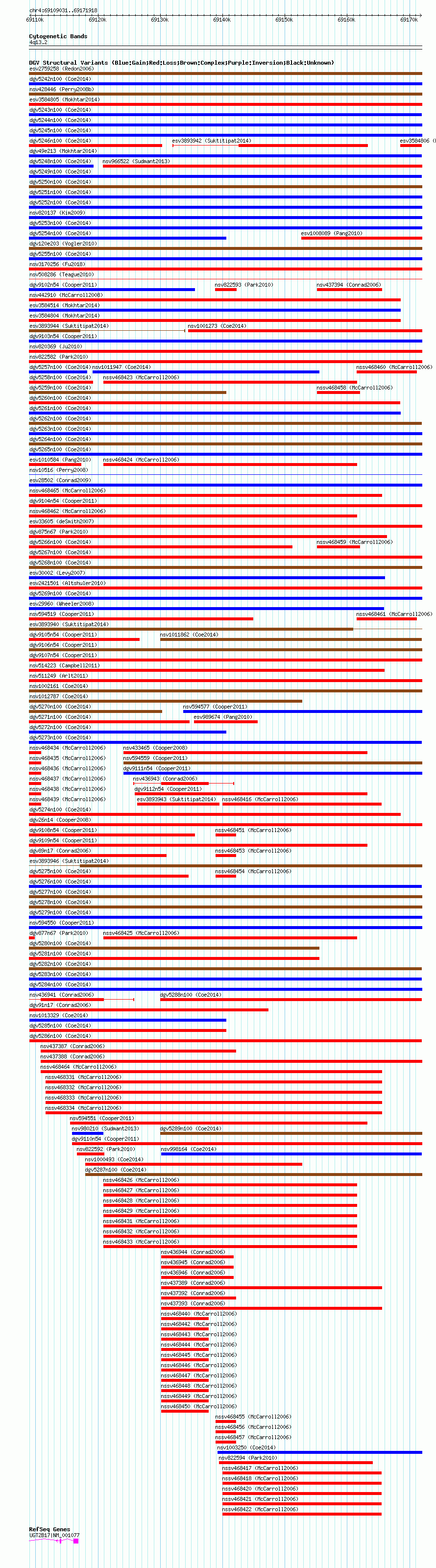 Variant DetailsVariant: dgv5286n100| Internal ID | 22791373 | | Landmark | | | Location Information | | | Cytoband | 4q13.2 | | Allele length | | Assembly | Allele length | | hg38 | 62888 | | hg19 | 62888 | | hg18 | 62888 |
