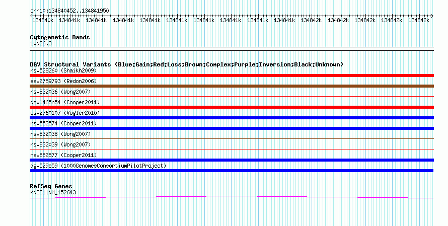 Variant DetailsVariant: dgv529e59| Internal ID | 22761749 | | Landmark | | | Location Information | | | Cytoband | 10q26.3 | | Allele length | | Assembly | Allele length | | hg38 | 1499 | | hg19 | 1499 | | hg18 | 1499 |
