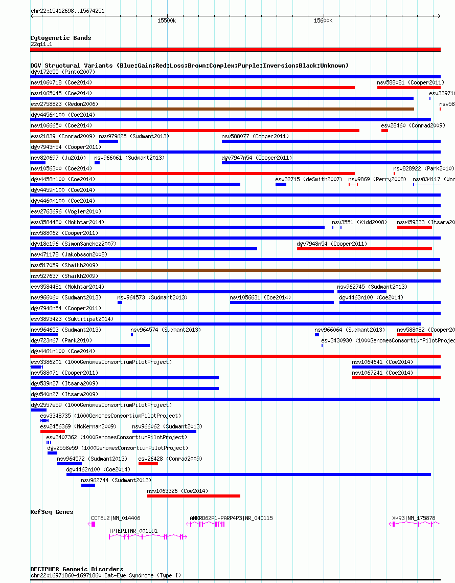 Variant DetailsVariant: dgv540n27| Internal ID | 22767269 | | Landmark | | | Location Information | | | Cytoband | 22q11.1 | | Allele length | | Assembly | Allele length | | hg38 | 261554 | | hg19 | 261554 | | hg18 | 261554 | | hg17 | 261554 |