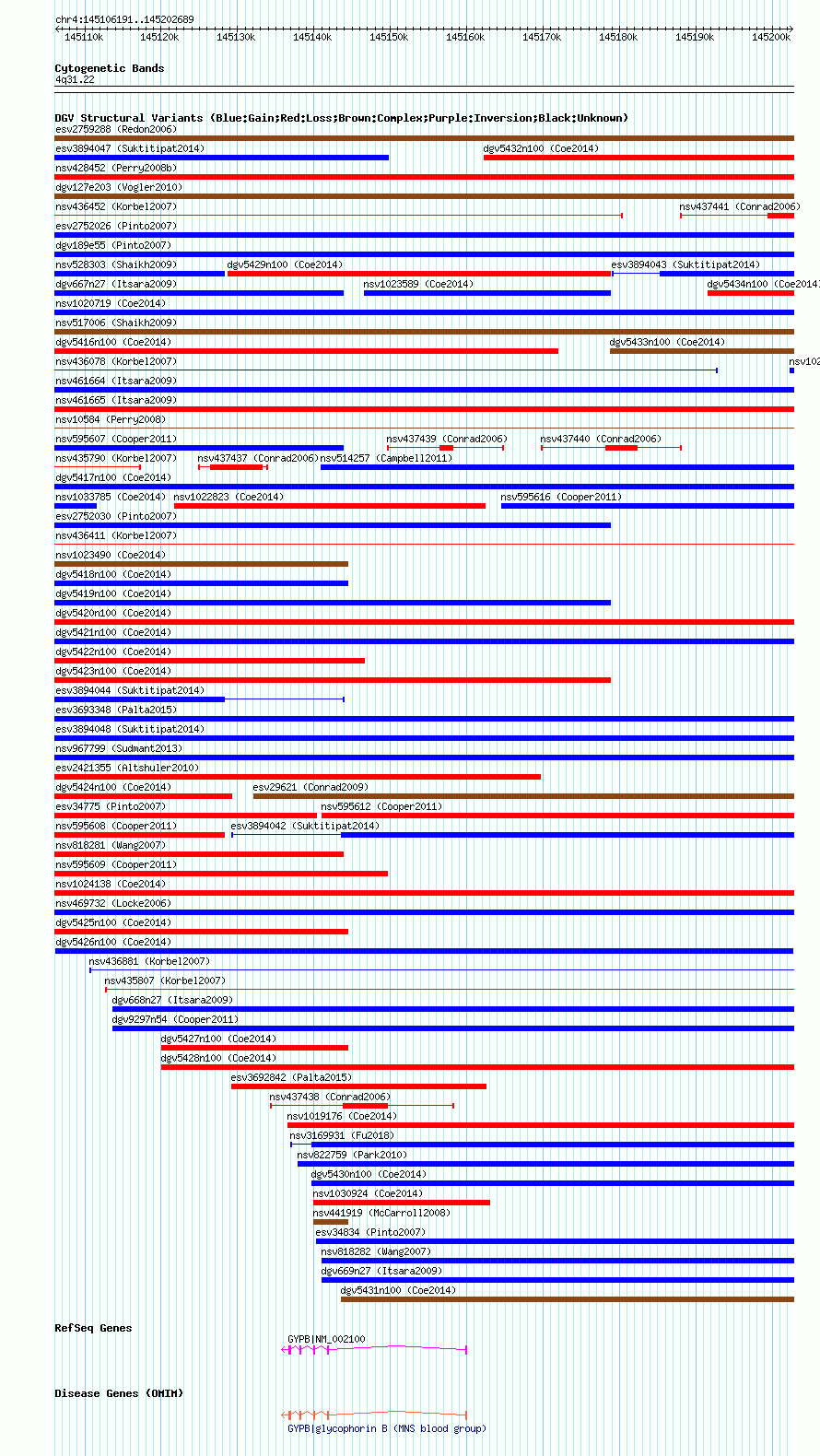Variant DetailsVariant: dgv5426n100| Internal ID | 22791513 | | Landmark | | | Location Information | | | Cytoband | 4q31.21 | | Allele length | | Assembly | Allele length | | hg38 | 96499 | | hg19 | 96499 | | hg18 | 96499 |