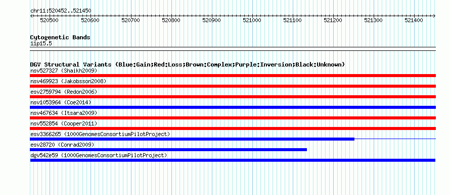 Variant DetailsVariant: dgv542e59Internal ID | 20127291 | Landmark | | Location Information | | Cytoband | 11p15.5 | Allele length | Assembly | Allele length | hg38 | 999 | hg19 | 999 | hg18 | 999 |