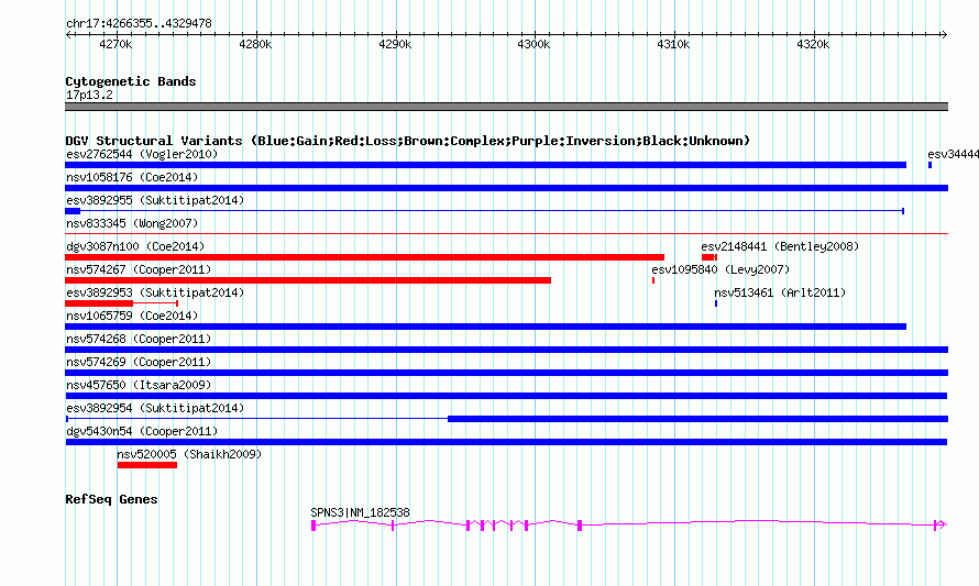 Variant DetailsVariant: dgv5430n54| Internal ID | 22773325 | | Landmark | | | Location Information | | | Cytoband | 17p13.2 | | Allele length | | Assembly | Allele length | | hg38 | 63124 | | hg19 | 63124 | | hg18 | 63124 |