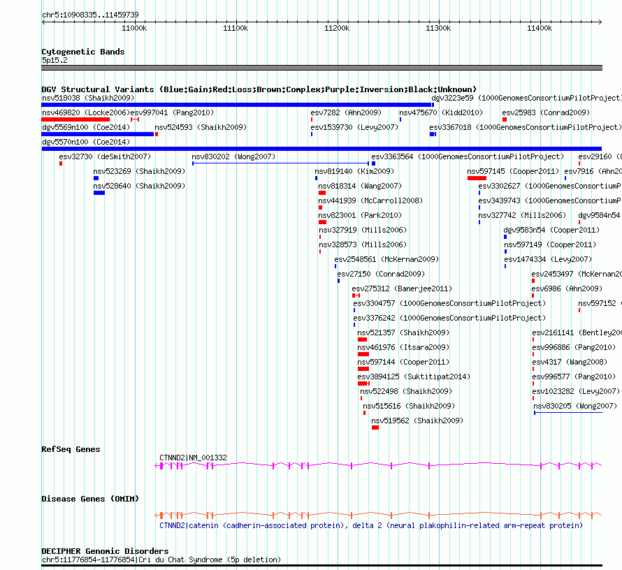 Variant DetailsVariant: dgv5570n100| Internal ID | 20157186 | | Landmark | | | Location Information | | | Cytoband | 5p15.2 | | Allele length | | Assembly | Allele length | | hg38 | 551405 | | hg19 | 551405 | | hg18 | 551405 |
