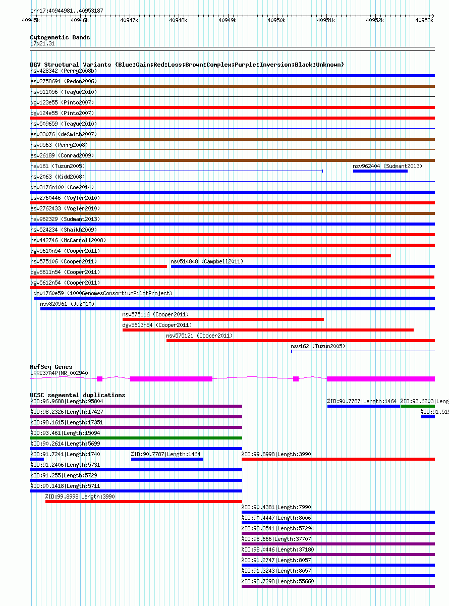 Variant DetailsVariant: dgv5611n54Internal ID | 20139035 | Landmark | | Location Information | | Cytoband | 17q21.31 | Allele length | Assembly | Allele length | hg38 | 8207 | hg19 | 8207 | hg18 | 8207 |