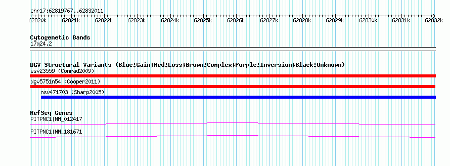| | Variant Type | CNV loss | | Copy Number | | | Allele State | | | Allele Origin | | | Probe Count | | | Validation Flag | | | Merged Status | M | | Merged Variants | | | Supporting Variants | nsv575901, nsv575902 | | Samples | | | Known Genes | PITPNC1 | | Method | SNP array | | Analysis | Illumina SNP array copy number analysis | | Platform | Not reported | | Comments | | | Reference | Cooper_et_al_2011 | | Pubmed ID | 21841781 | | Accession Number(s) | dgv5751n54