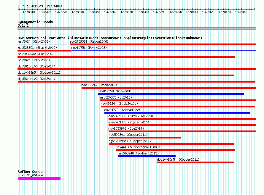 Variant DetailsVariant: dgv5814n100| Internal ID | 22791901 | | Landmark | | | Location Information | | | Cytoband | 5q31.2 | | Allele length | | Assembly | Allele length | | hg38 | 14542 | | hg19 | 14542 | | hg18 | 14542 |