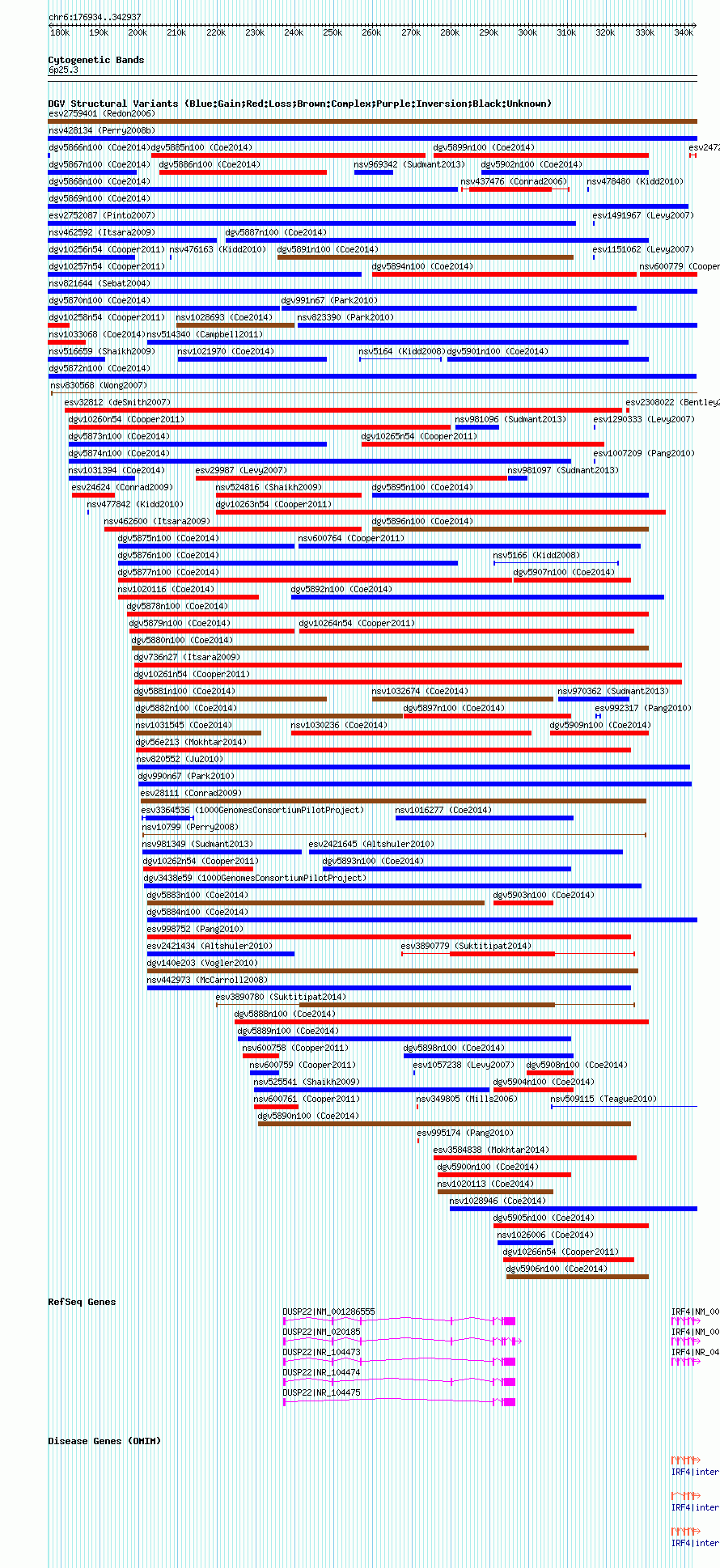 Variant DetailsVariant: dgv5872n100| Internal ID | 20157488 | | Landmark | | | Location Information | | | Cytoband | 6p25.3 | | Allele length | | Assembly | Allele length | | hg38 | 166004 | | hg19 | 166004 | | hg18 | 166004 |