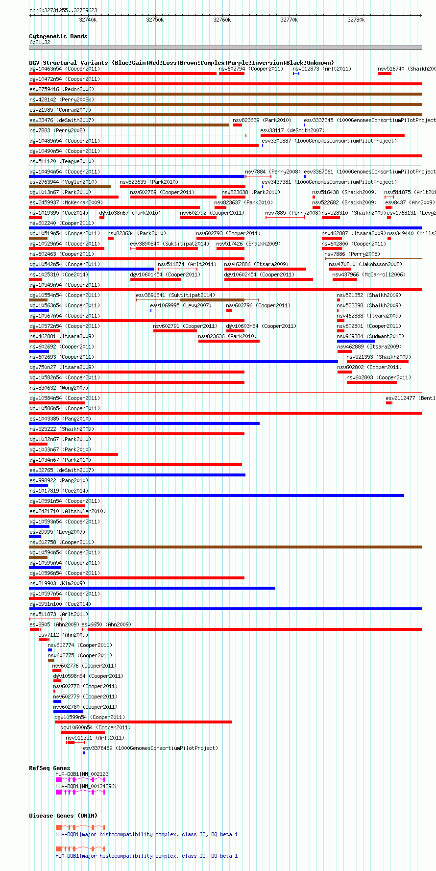 Variant DetailsVariant: dgv5951n100| Internal ID | 22792038 | | Landmark | | | Location Information | | | Cytoband | 6p21.32 | | Allele length | | Assembly | Allele length | | hg38 | 58369 | | hg19 | 58369 | | hg18 | 58369 |