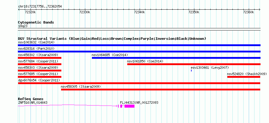 Variant DetailsVariant: dgv6076n54| Internal ID | 22773971 | | Landmark | | | Location Information | | | Cytoband | 18q23 | | Allele length | | Assembly | Allele length | | hg38 | 44298 | | hg19 | 44299 | | hg18 | 44299 |