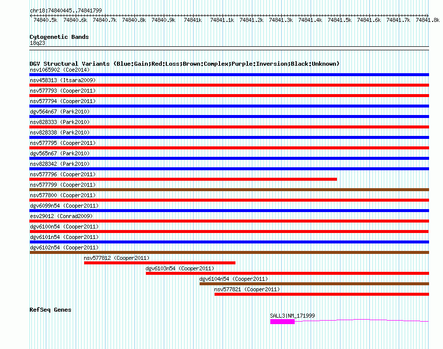 Variant DetailsVariant: dgv6100n54| Internal ID | 22773995 | | Landmark | | | Location Information | | | Cytoband | 18q23 | | Allele length | | Assembly | Allele length | | hg38 | 1355 | | hg19 | 1355 | | hg18 | 1355 |