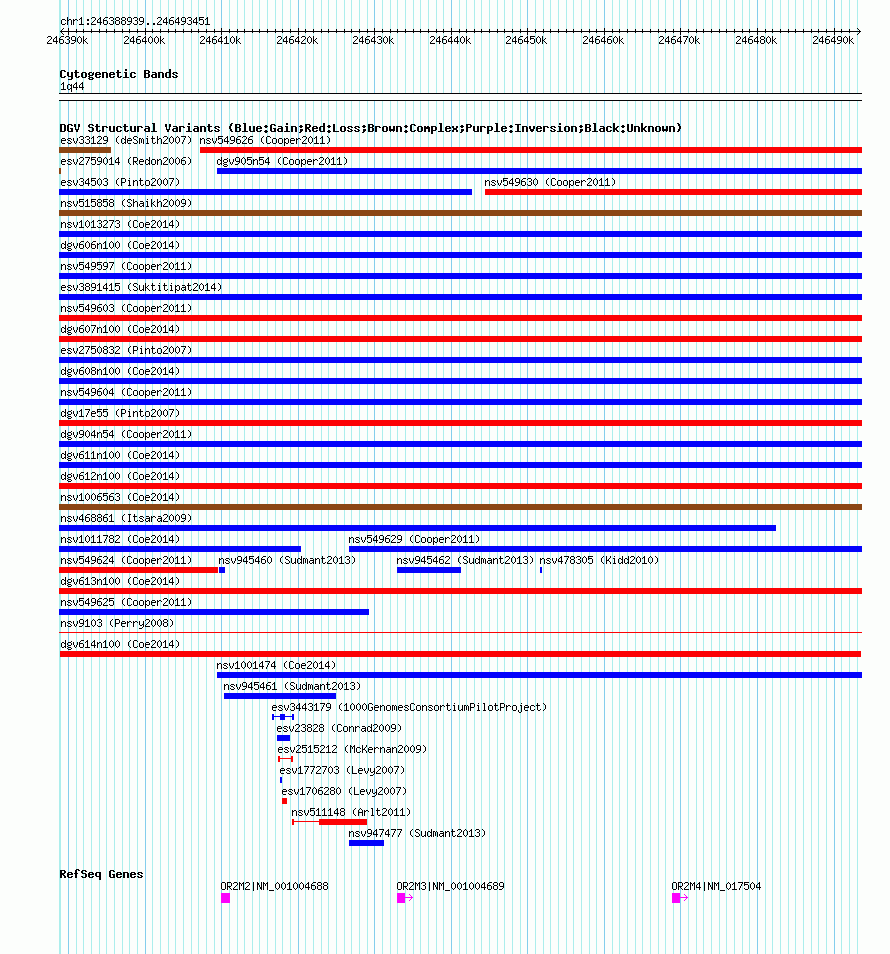 Variant DetailsVariant: dgv614n100| Internal ID | 22786701 | | Landmark | | | Location Information | | | Cytoband | 1q44 | | Allele length | | Assembly | Allele length | | hg38 | 104513 | | hg19 | 104513 | | hg18 | 104513 |