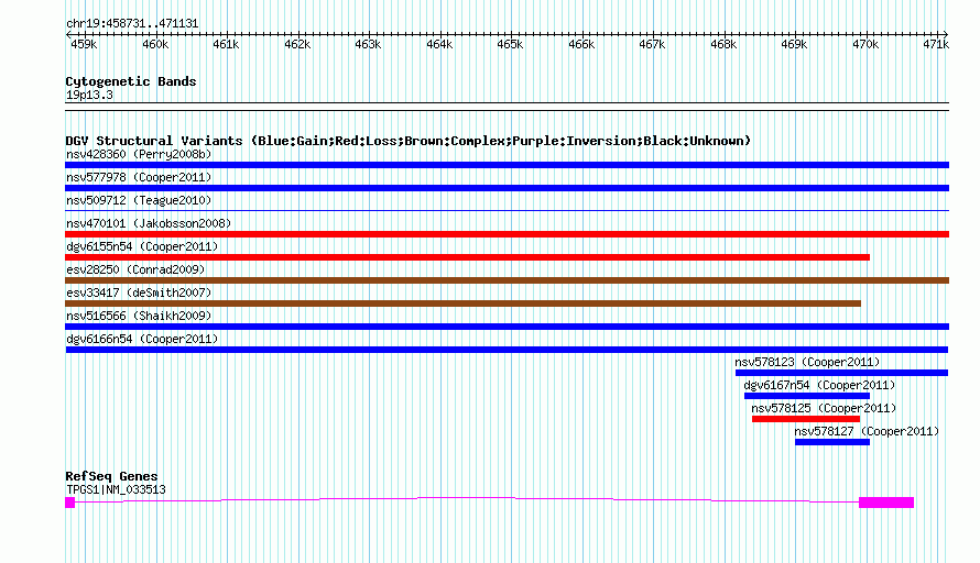 | | Variant Type | CNV gain | | Copy Number | | | Allele State | | | Allele Origin | | | Probe Count | | | Validation Flag | | | Merged Status | M | | Merged Variants | | | Supporting Variants | nsv578122, nsv578121 | | Samples | | | Known Genes | TPGS1 | | Method | SNP array | | Analysis | Illumina SNP array copy number analysis | | Platform | Not reported | | Comments | | | Reference | Cooper_et_al_2011 | | Pubmed ID | 21841781 | | Accession Number(s) | dgv6166n54