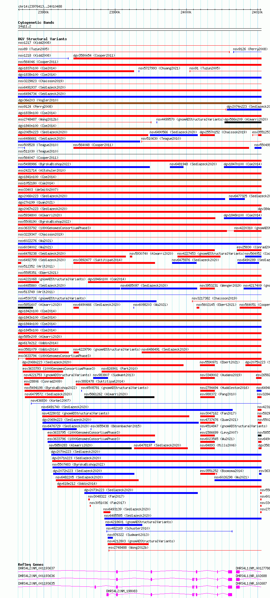 Variant DetailsVariant: dgv617e212 | Internal ID | 22783544 | | Landmark | | | Location Information | | | Cytoband | 14q11.2 | | Allele length | | Assembly | Allele length | | hg38 | 34076 | | hg19 | 34076 |