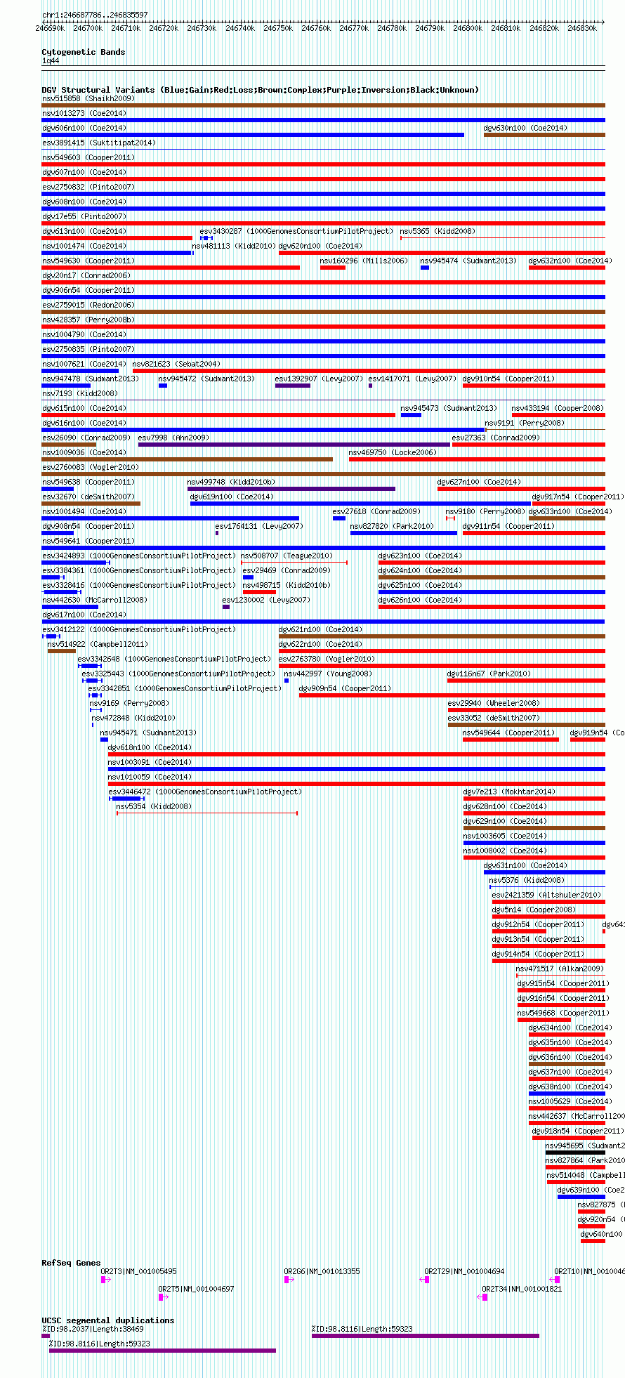 Variant DetailsVariant: dgv617n100| Internal ID | 20152233 | | Landmark | | | Location Information | | | Cytoband | 1q44 | | Allele length | | Assembly | Allele length | | hg38 | 147812 | | hg19 | 147812 | | hg18 | 147812 |