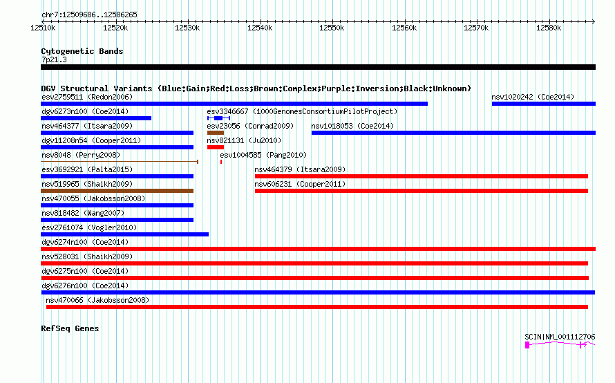 Variant DetailsVariant: dgv6276n100| Internal ID | 22792363 | | Landmark | | | Location Information | | | Cytoband | 7p21.3 | | Allele length | | Assembly | Allele length | | hg38 | 76581 | | hg19 | 76580 | | hg18 | 76580 |