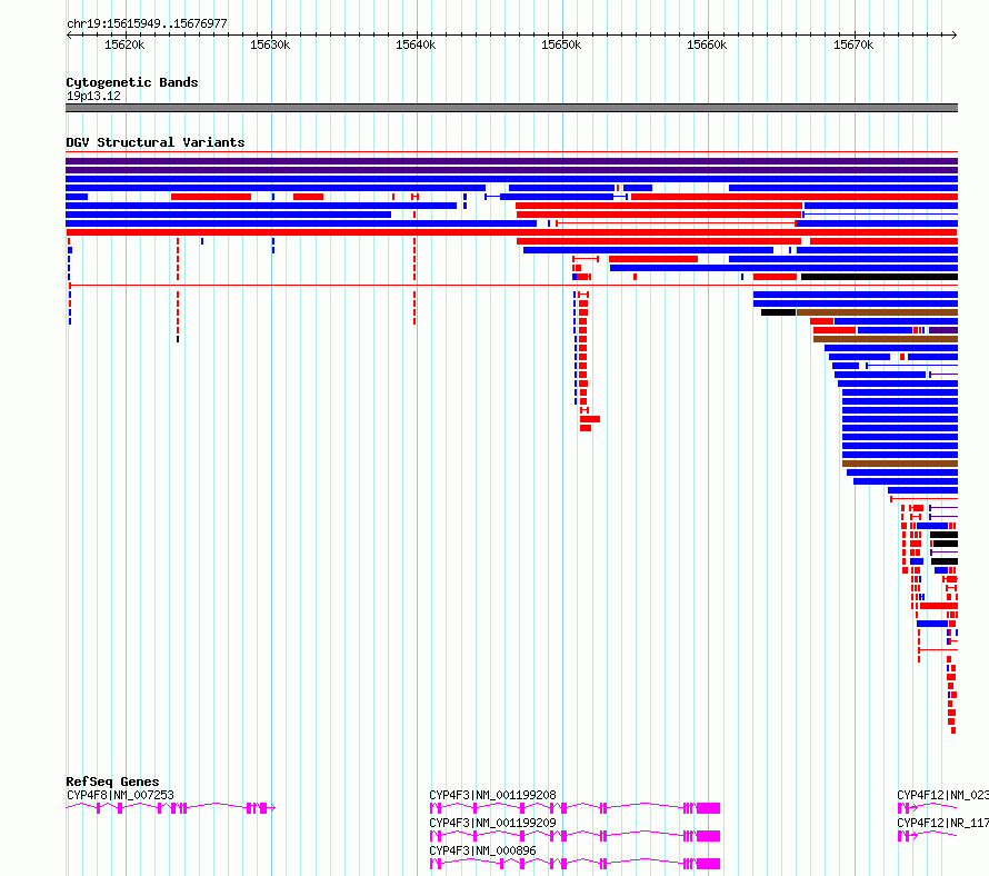 | | Variant Type | CNV deletion | | Copy Number | | | Allele State | | | Allele Origin | | | Probe Count | | | Validation Flag | | | Merged Status | M | | Merged Variants | | | Supporting Variants | esv2664037, esv2673235, esv2657942, esv2661183, esv2673421 | | Samples | HG00337, NA19764, NA20768, HG01171, HG00245, HG00479, NA07051 | | Known Genes | CYP4F12, CYP4F3, CYP4F8 | | Method | Merging | | Analysis | No reference, merging analysis | | Platform | Merging | | Comments | | | Reference | 1000_Genomes_Consortium_Phase_1 | | Pubmed ID | 23128226 | | Accession Number(s) | dgv627e199