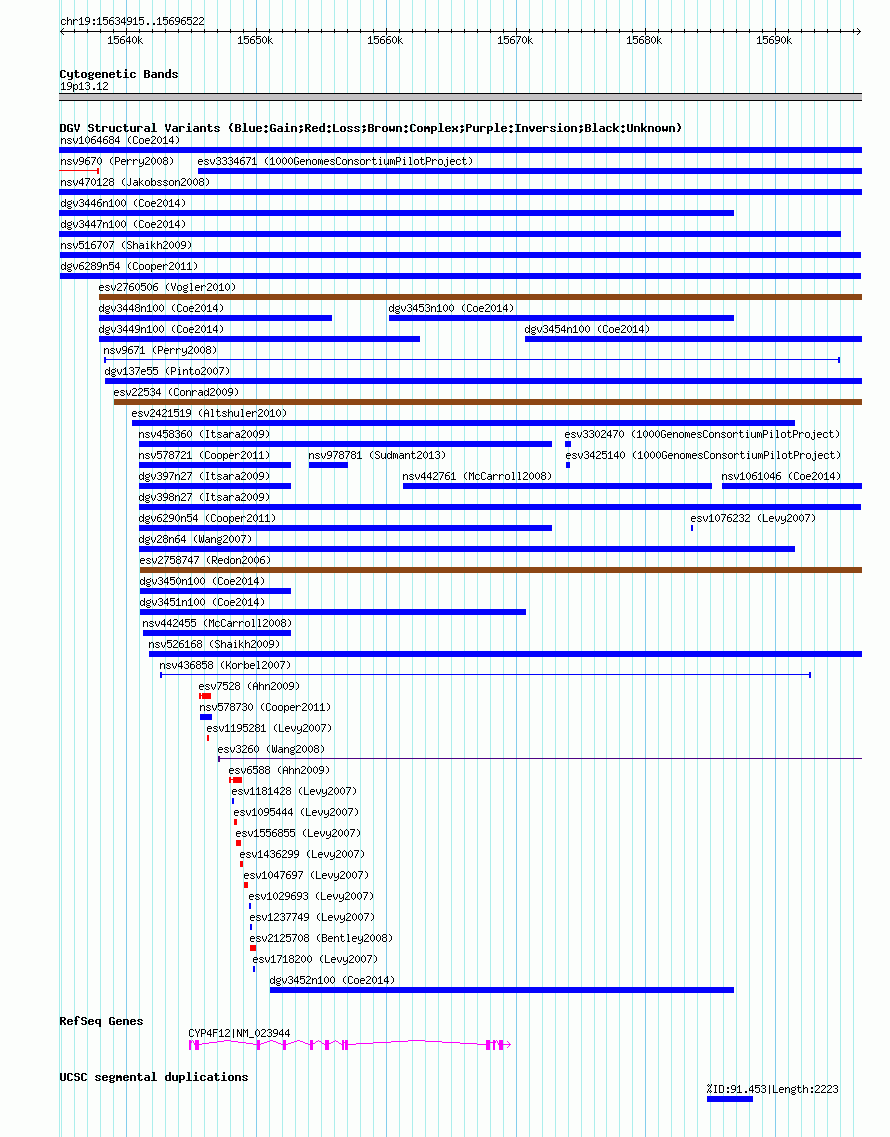 Variant DetailsVariant: dgv6289n54| Internal ID | 20139713 | | Landmark | | | Location Information | | | Cytoband | 19p13.12 | | Allele length | | Assembly | Allele length | | hg38 | 61608 | | hg19 | 61608 | | hg18 | 61608 |