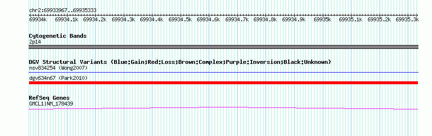 Variant DetailsVariant: dgv634n67 | Internal ID | 22781617 | | Landmark | | | Location Information | | | Cytoband | 2p13.3 | | Allele length | | Assembly | Allele length | | hg38 | 1367 | | hg19 | 1367 | | hg18 | 1367 |