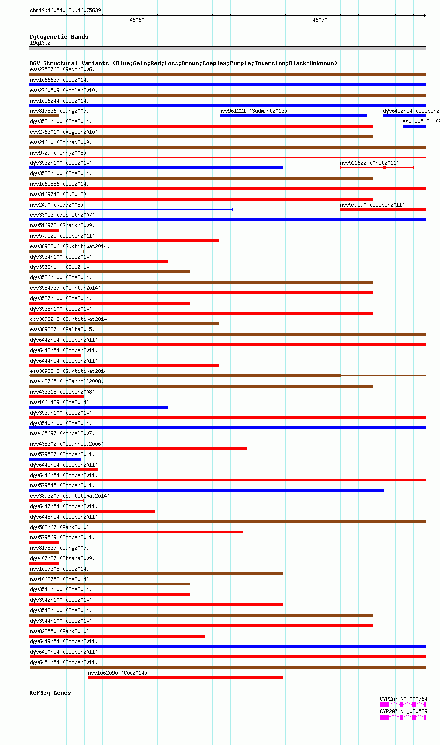 Variant DetailsVariant: dgv6449n54| Internal ID | 22774344 | | Landmark | | | Location Information | | | Cytoband | 19q13.2 | | Allele length | | Assembly | Allele length | | hg38 | 21627 | | hg19 | 21627 | | hg18 | 21627 |