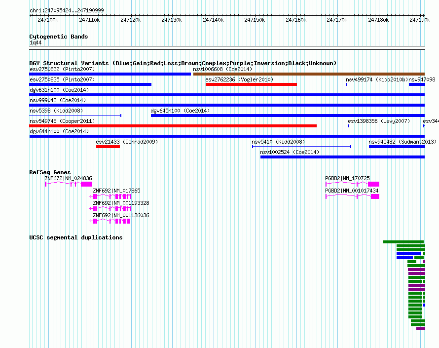Variant DetailsVariant: dgv644n100| Internal ID | 20152260 | | Landmark | | | Location Information | | | Cytoband | 1q44 | | Allele length | | Assembly | Allele length | | hg38 | 95576 | | hg19 | 95576 | | hg18 | 95576 |