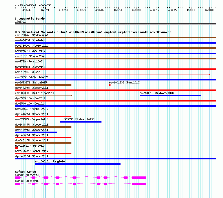 | | Variant Type | CNV gain | | Copy Number | | | Allele State | | | Allele Origin | | | Probe Count | | | Validation Flag | | | Merged Status | M | | Merged Variants | | | Supporting Variants | nsv579593, nsv579592 | | Samples | | | Known Genes | CYP2A7 | | Method | SNP array | | Analysis | Illumina SNP array copy number analysis | | Platform | Not reported | | Comments | | | Reference | Cooper_et_al_2011 | | Pubmed ID | 21841781 | | Accession Number(s) | dgv6452n54