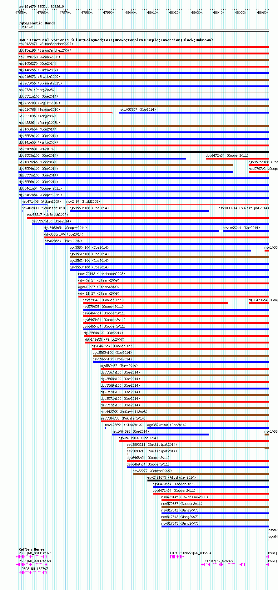 Variant DetailsVariant: dgv6461n54| Internal ID | 22774356 | | Landmark | | | Location Information | | | Cytoband | 19q13.2 | | Allele length | | Assembly | Allele length | | hg38 | 113765 | | hg19 | 113765 | | hg18 | 113765 |