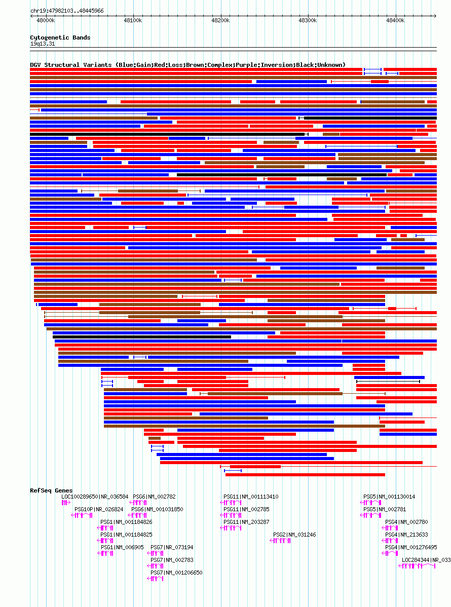 | | Variant Type | CNV loss | | Copy Number | | | Allele State | | | Allele Origin | | | Probe Count | | | Validation Flag | | | Merged Status | M | | Merged Variants | | | Supporting Variants | nsv579679, nsv579681, nsv579700, nsv579682, nsv579698, nsv579670, nsv579657, nsv579668, nsv579706, nsv579669, nsv579688, nsv579678, nsv579667, nsv579694, nsv579689, nsv579680, nsv579693, nsv579699 | | Samples | | | Known Genes | LOC100289650, LOC284344, PSG1, PSG10P, PSG11, PSG2, PSG4, PSG5, PSG6, PSG7 | | Method | SNP array | | Analysis | Illumina SNP array copy number analysis | | Platform | Not reported | | Comments | | | Reference | Cooper_et_al_2011 | | Pubmed ID | 21841781 | | Accession Number(s) | dgv6467n54