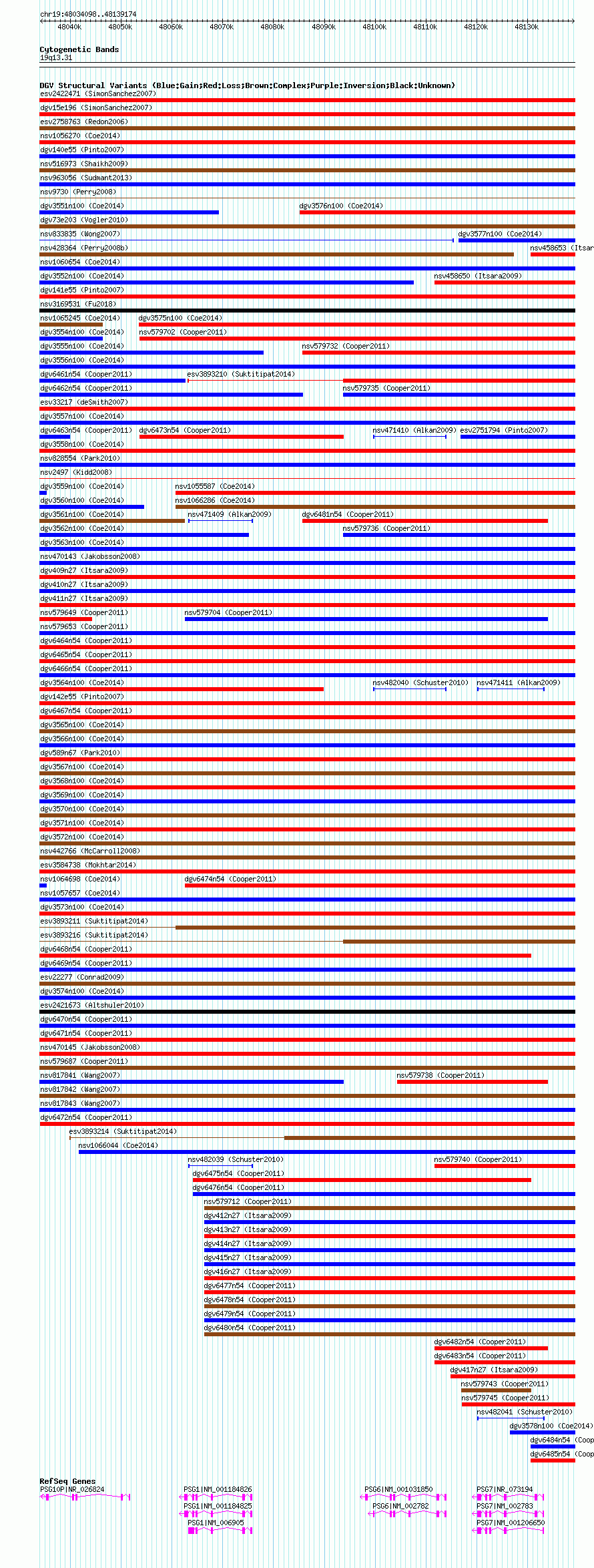 Variant DetailsVariant: dgv6472n54| Internal ID | 22774367 | | Landmark | | | Location Information | | | Cytoband | 19q13.2 | | Allele length | | Assembly | Allele length | | hg38 | 105077 | | hg19 | 105077 | | hg18 | 105077 |