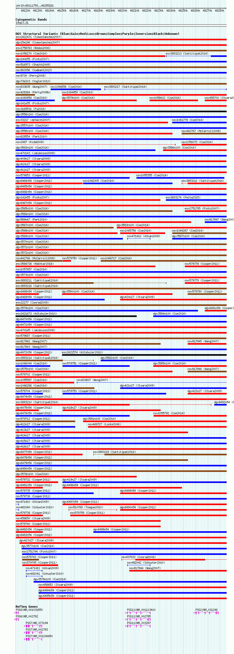 Variant DetailsVariant: dgv6483n54| Internal ID | 22774378 | | Landmark | | | Location Information | | | Cytoband | 19q13.31 | | Allele length | | Assembly | Allele length | | hg38 | 173512 | | hg19 | 173512 | | hg18 | 173512 |