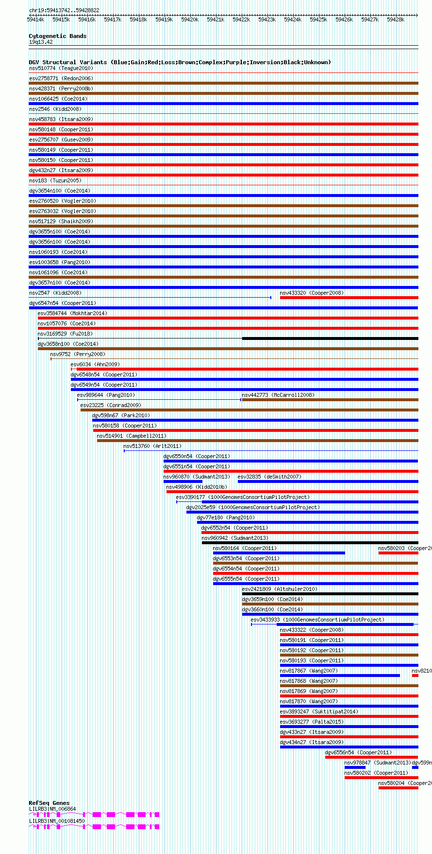 | Allele length | | Assembly | Allele length | | hg38 | 15074 | | hg19 | 15081 | | hg18 | 15081 |