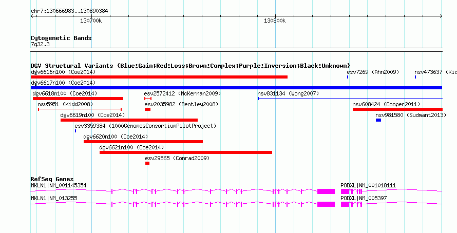 | | Variant Type | CNV gain | | Copy Number | | | Allele State | | | Allele Origin | | | Probe Count | | | Validation Flag | | | Merged Status | M | | Merged Variants | | | Supporting Variants | nsv1029950, nsv1027676 | | Samples | | | Known Genes | MKLN1, PODXL | | Method | SNP array | | Analysis | Affymetrix SNP array copy number analysis | | Platform | Affymetrix SNP Array 6.0 | | Comments | | | Reference | Coe_et_al_2014 | | Pubmed ID | 25217958 | | Accession Number(s) | dgv6617n100