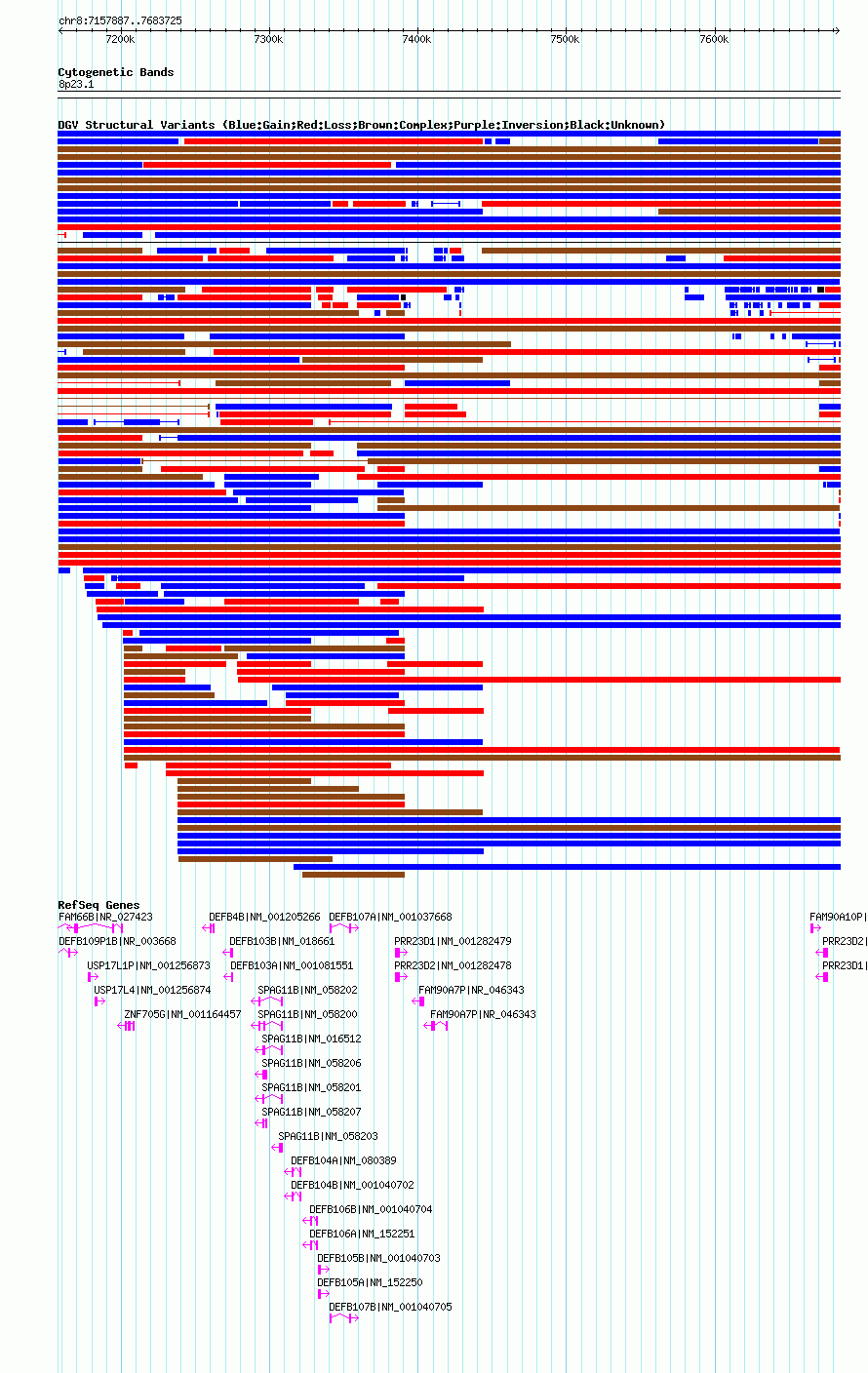 Variant DetailsVariant: dgv6908n100| Internal ID | 22792995 | | Landmark | | | Location Information | | | Cytoband | 8p23.1 | | Allele length | | Assembly | Allele length | | hg38 | 475839 | | hg19 | 475839 | | hg18 | 525839 |