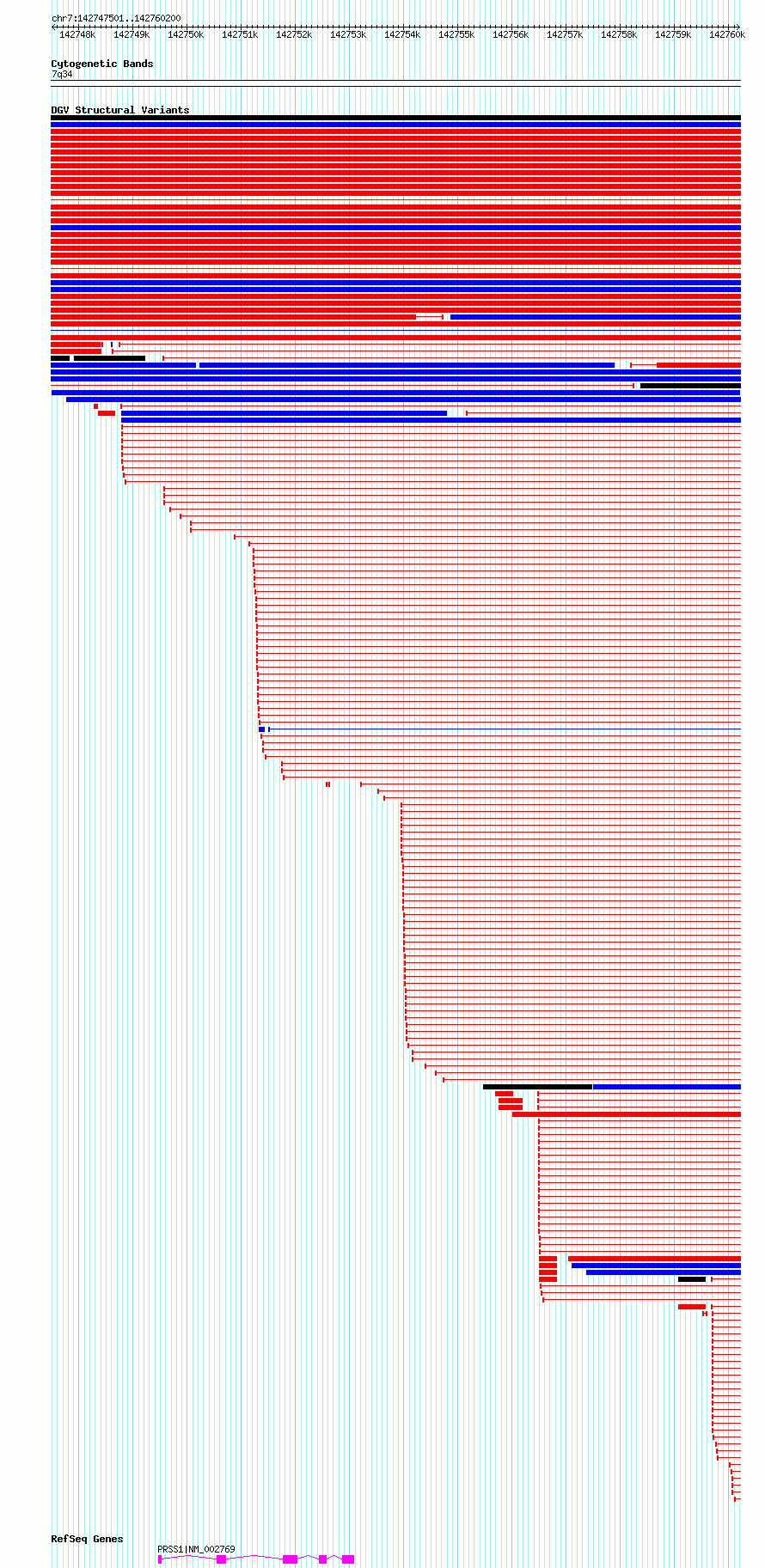 Variant DetailsVariant: dgv7152n223| Internal ID | 22810120 | | Landmark | | | Location Information | | | Cytoband | 7q34 | | Allele length | | Assembly | Allele length | | hg38 | 12700 | | hg19 | 12698 |