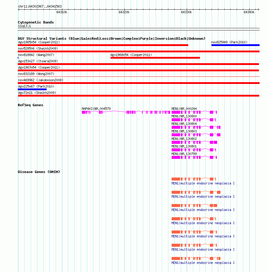 Variant DetailsVariant: dgv72n21| Internal ID | 22766264 | | Landmark | | | Location Information | | | Cytoband | 11q13.1 | | Allele length | | Assembly | Allele length | | hg38 | 38597 | | hg19 | 38597 | | hg18 | 38597 | | hg17 | 38597 |
