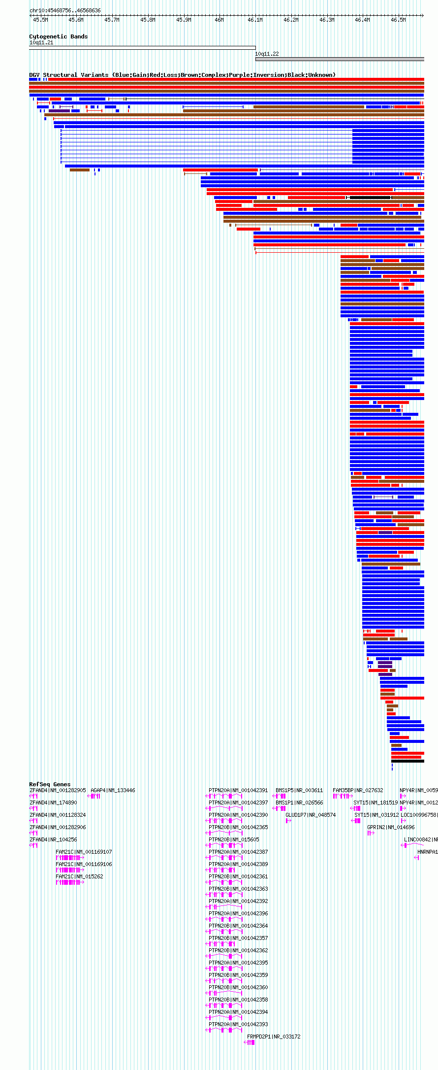 Variant DetailsVariant: dgv731n100| Internal ID | 22786818 | | Landmark | | | Location Information | | | Cytoband | 10q11.21 | | Allele length | | Assembly | Allele length | | hg19 | 999881 | | hg18 | 1099881 |