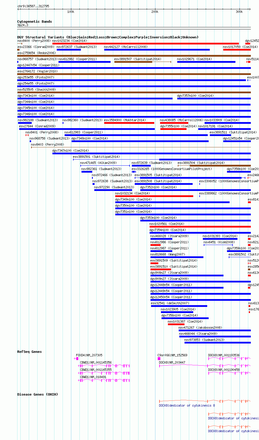 | | Variant Type | CNV gain | | Copy Number | | | Allele State | | | Allele Origin | | | Probe Count | | | Validation Flag | | | Merged Status | M | | Merged Variants | | | Supporting Variants | nsv1027808, nsv1026546, nsv1032144, nsv1026296, nsv1033923, nsv1015933, nsv1031167, nsv1033678 | | Samples | | | Known Genes | C9orf66, CBWD1, DOCK8, FOXD4 | | Method | SNP array | | Analysis | Affymetrix SNP array copy number analysis | | Platform | Affymetrix SNP Array 6.0 | | Comments | | | Reference | Coe_et_al_2014 | | Pubmed ID | 25217958 | | Accession Number(s) | dgv7344n100