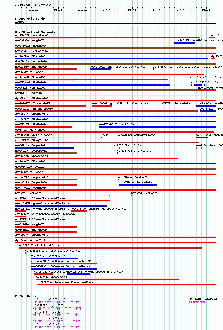 Variant DetailsVariant: dgv735e212| Internal ID | 20149191 | | Landmark | | | Location Information | | | Cytoband | 15q15.3 | | Allele length | | Assembly | Allele length | | hg38 | 81270 | | hg19 | 81270 |