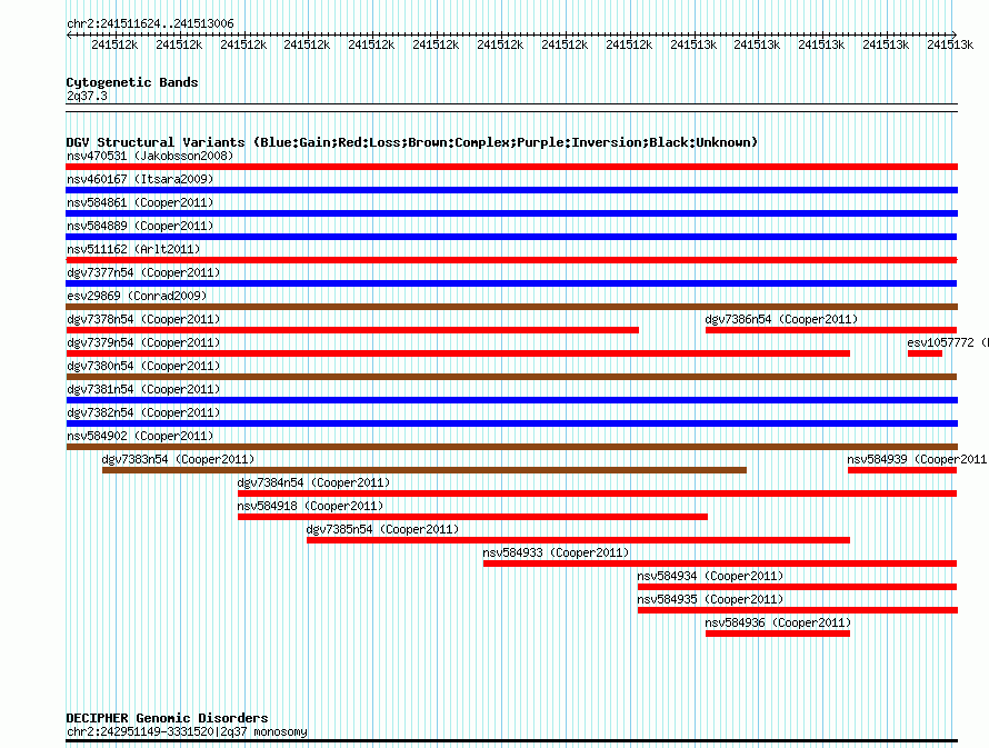 Variant DetailsVariant: dgv7380n54| Internal ID | 22775275 | | Landmark | | | Location Information | | | Cytoband | 2q37.3 | | Allele length | | Assembly | Allele length | | hg38 | 1383 | | hg19 | 1383 | | hg18 | 1383 |