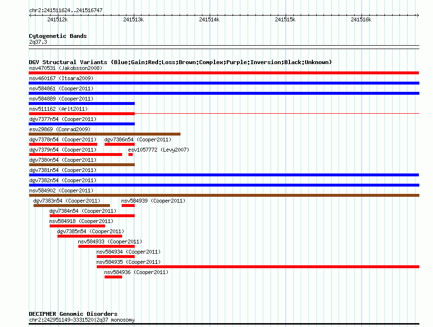 Variant DetailsVariant: dgv7381n54| Internal ID | 22775276 | | Landmark | | | Location Information | | | Cytoband | 2q37.3 | | Allele length | | Assembly | Allele length | | hg38 | 5124 | | hg19 | 5124 | | hg18 | 5124 |