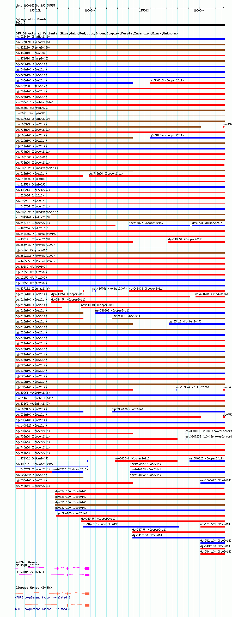 Variant DetailsVariant: dgv742n54| Internal ID | 22768637 | | Landmark | | | Location Information | | | Cytoband | 1q31.3 | | Allele length | | Assembly | Allele length | | hg38 | 38198 | | hg19 | 38198 | | hg18 | 38198 |