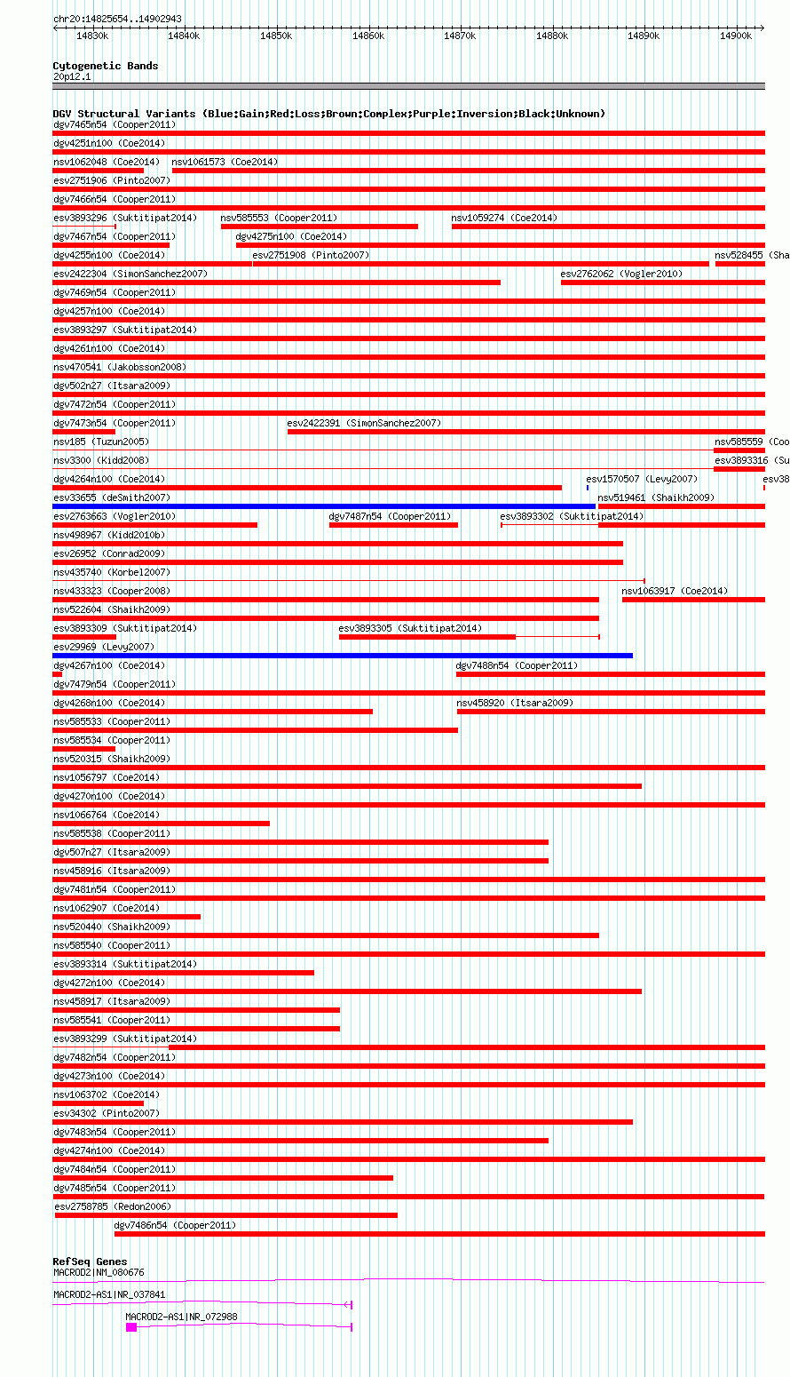 Variant DetailsVariant: dgv7485n54| Internal ID | 22775380 | | Landmark | | | Location Information | | | Cytoband | 20p12.1 | | Allele length | | Assembly | Allele length | | hg38 | 77290 | | hg19 | 77290 | | hg18 | 77290 |