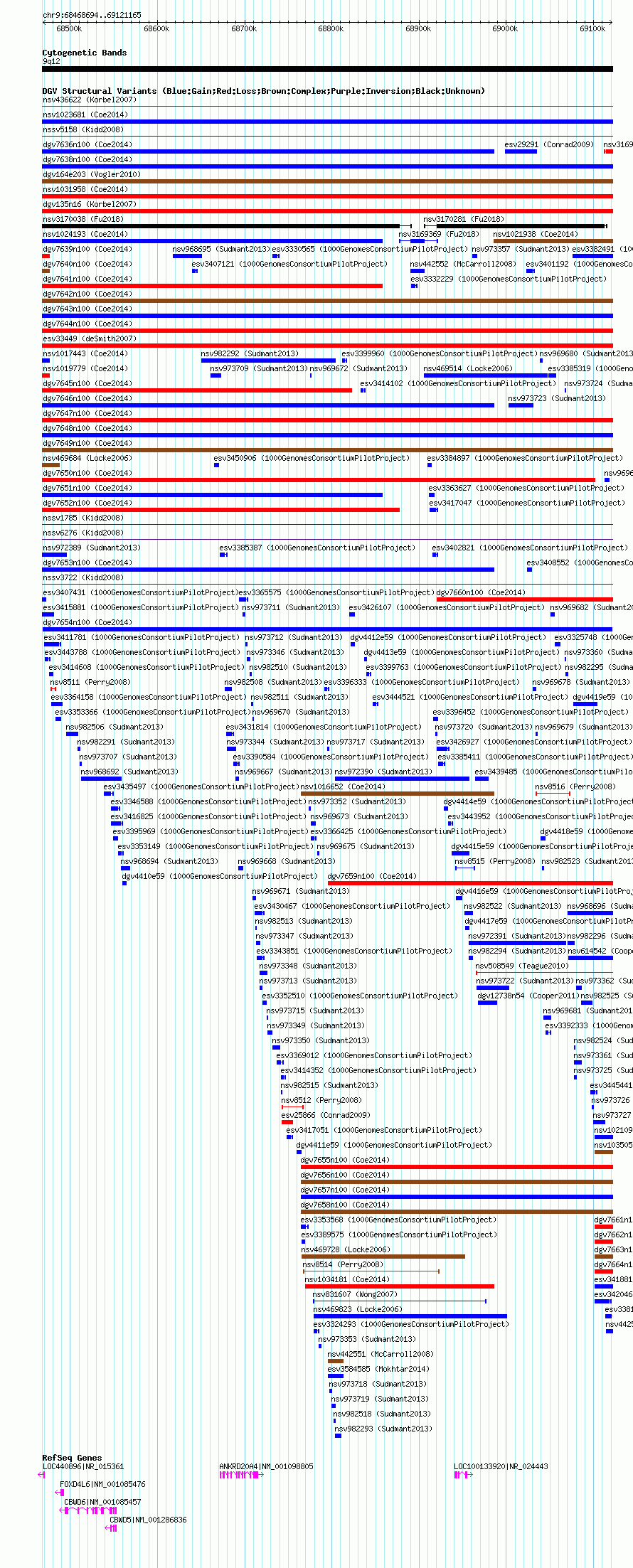 Variant DetailsVariant: dgv7654n100| Internal ID | 22793741 | | Landmark | | | Location Information | | | Cytoband | 9q12 | | Allele length | | Assembly | Allele length | | hg38 | 850480 | | hg19 | 652472 | | hg18 | 652472 |